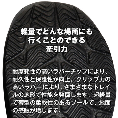 荒れたトレイルから岩だらけの川底まで、頑丈なラバートゥバンパーがつま先を確実に守ります。