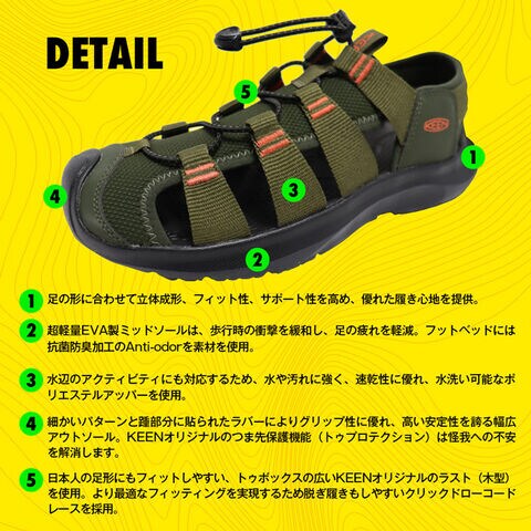 ・日日本人の足形にもフィットしやすい、トゥボックスの広いKEENオリジナルのラスト(木型)を使用。