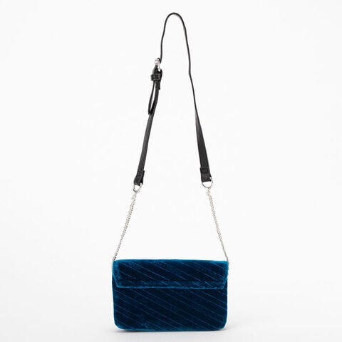 ロゴが入ったベロア生地で高級感がある、ショルダーポーチ。