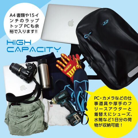 容量25リットルで、雪やゲリラ豪雨など全天候対応!