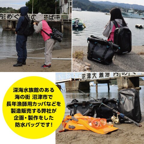 防水素材を高周波で溶接、止水ファスナーを使用し水の侵入を防止。