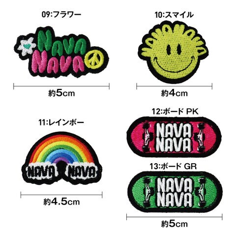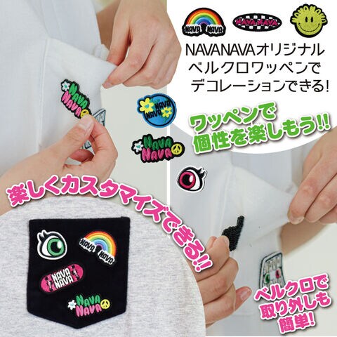 NAVANAVAオリジナルのウェアやキャップに貼り付けて楽しくカスタマイズできる。取り外しも簡単!