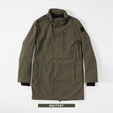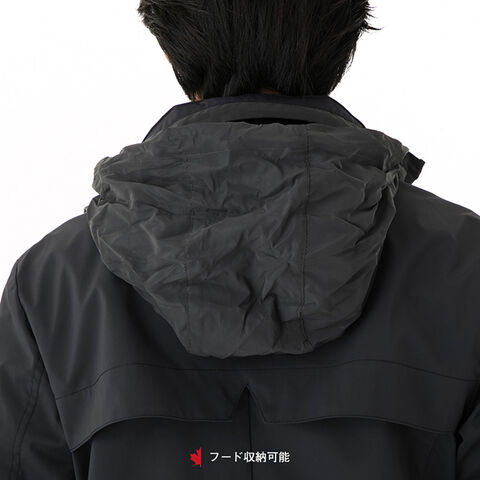 フードが襟裏に収納できるのでシーンに合わせてお使いいただけます。