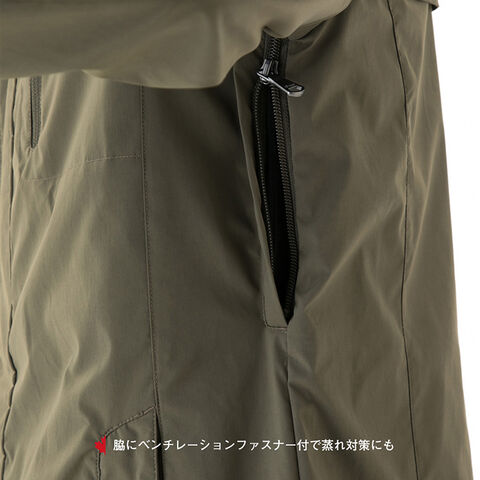 脇下のファスナーで蒸れなどを軽減できるベンチレーション機能付きです。