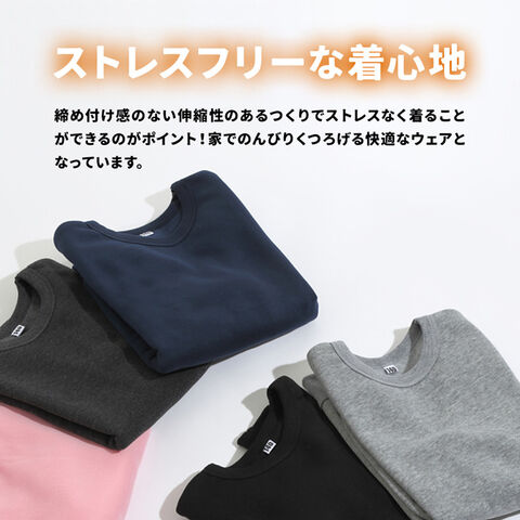 ゆったりと着れるスウェットはルームウェアにぴったり。