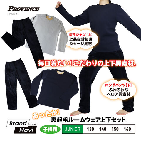 PROVENCE PV-517J / プロヴァンス キッズ ジュニア パジャマ 上下異素材 裏起毛 針抜きスウェット ボアパンツ ルームウェア ナイトウェア 部屋着 上下セット