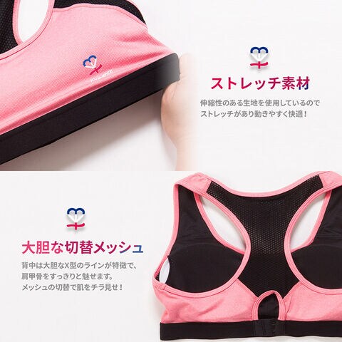 レディース スポーツブラ トレーニング フィットネス 吸汗速乾 メッシュ ホック バックホック スポブラ 揺れない ランニング きれい かわいい ジム エクササイズ