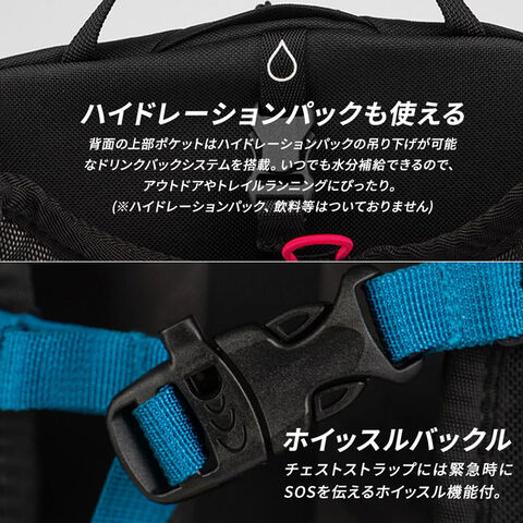 また、背面の上部ポケットにはハイドレーションパックの吊り下げが可能な