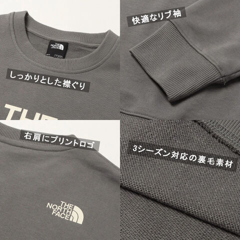 ノースフェイス メンズ スウェット トレーナー 冬 保温性 長袖 大きい THE NORTH FACE 上着を着てもかさばらない あたたかい 厚み普通