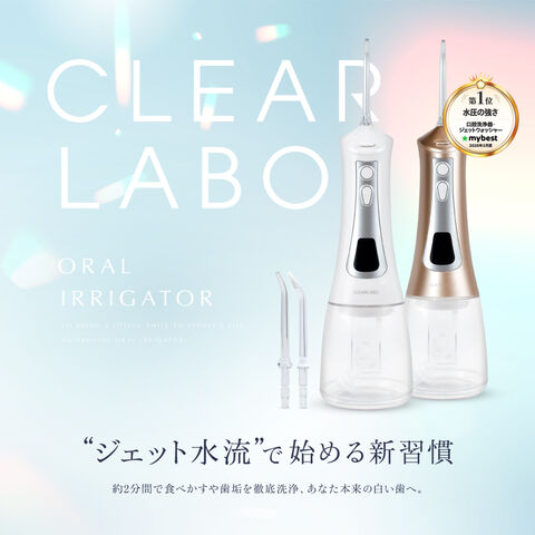 CLEARLABO(クリアラボ)ORAL IRRIGATOR。普段の歯磨きだけでは落としきれない食べかすや歯垢汚れを、ジェット水流で徹底洗浄。磨き残しを減らすことで、虫歯や歯周病・口臭の予防に期待ができます。