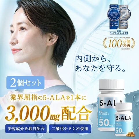 【ポイント大増量】【2個セット】 5ALA サプリ 3000mg (1カプセルに50mg配合) 国産 ネオファーマジャパン製 5alaサプリメント 5-アミノレブリン酸リン酸塩 60カプセル (60日分) 日本製 COCOLAB