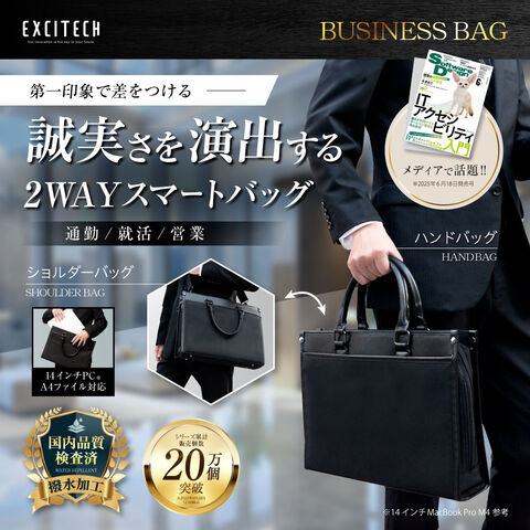 【ポイント大増量】ビジネスバッグ 大容量 撥水 自立 A4 リクルートバッグ 2way 13インチ 就活 出張 メンズ ギフト プレゼント Excitech