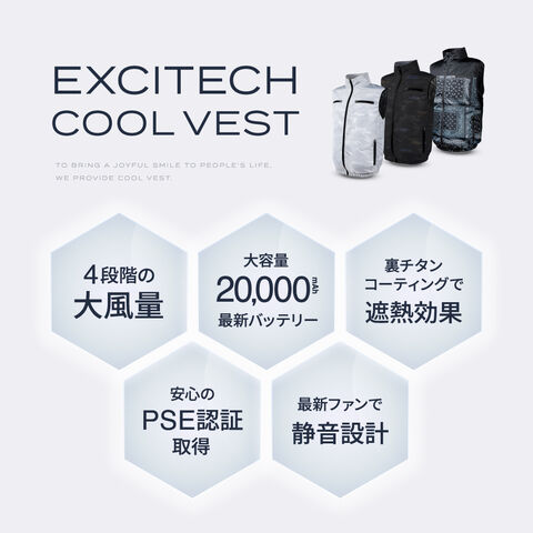 ※EXCITECH COOL VEST専用のファン、バッテリーを必ずご使用ください。他社製品と組み合わせて使用しないでください。