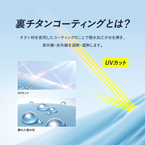 裏チタンコーティング/撥水加工のため水を弾き、紫外線・赤外線をUVカット仕様です。