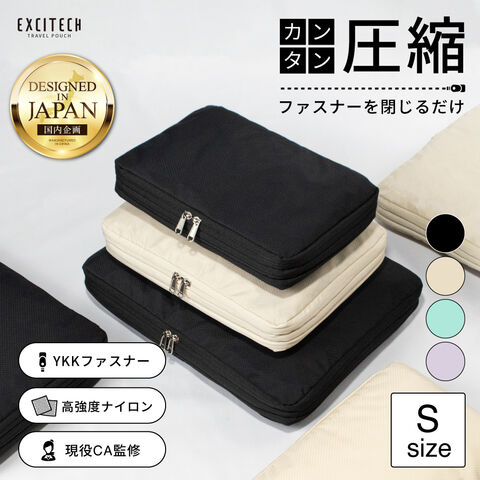 【ポイント大増量】【現役客室乗務員監修】 EXCITECH トラベルポーチ(Sサイズ)日本企業企画 圧縮ポーチ YKK 旅行用圧縮袋 撥水 国内品質試験実施済 両面収納 洗濯機洗い可