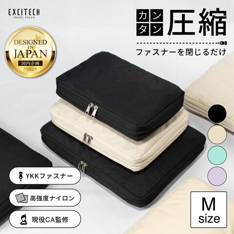 【ポイント大増量】【現役客室乗務員監修】 EXCITECH トラベルポーチ 日本企業企画 圧縮ポーチ YKK 旅行用圧縮袋 撥水 国内品質試験実施済 両面収納 洗濯機洗い可