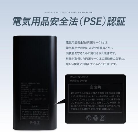 【PSE認証取得済み/20,000mAh大容量バッテリー】