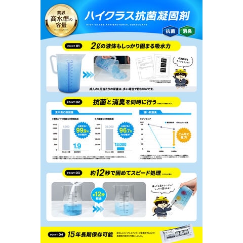 1回あたり12gの凝固剤を使用し、十分な吸水量を確保しています。