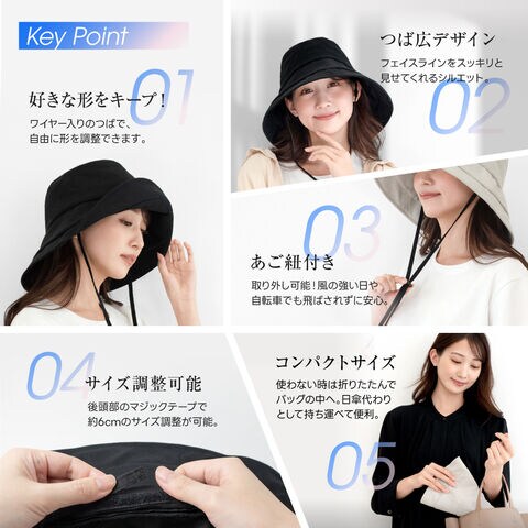 【ポイント大増量】UVカット 帽子【UVカット率100% 遮光率99.99%以上 UPF50+】[日本企業企画]日除け帽子 ワイヤー入り あご紐 ハット レディース メンズ