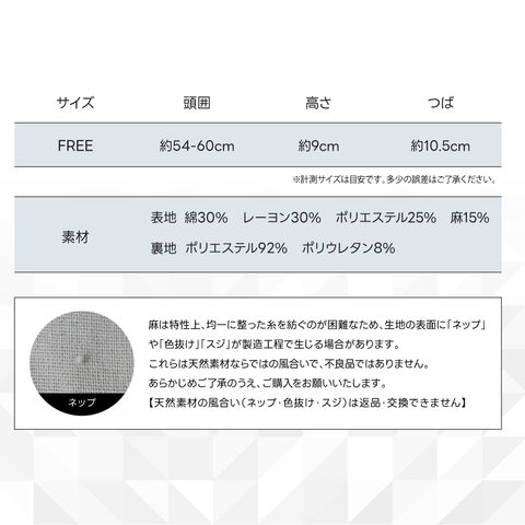 麻は特性上、生地の表面に「ネップ」「色抜け」「スジ」が製造工程で発生する場合がございます。