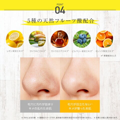 毛穴まわりの汚れをすっきり洗い流し、なめらかな肌印象に整えます。