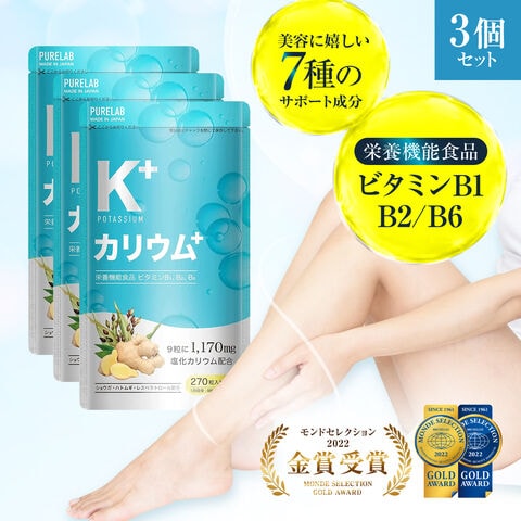 【ポイント大増量】【3袋セット】 カリウム サプリ (モンドセレクション金賞受賞) 塩化カリウム1170mg 栄養機能食品ビタミンB1 B2 B6 ダイエット カリウムサプリメント クエン酸 国内製造 PURELAB