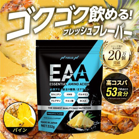 EAA (キウイ) BCAA サプリ HMB グルタミン クレアチン (製薬会社と共同開発) 必須アミノ酸 eaa bcaa アミノ酸 530g 53食分 PURELAB