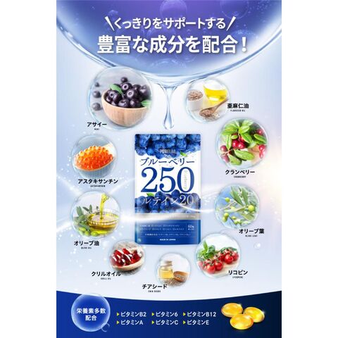 1日2粒でブルーベリー250mg、ルテイン20mg摂取頂けます!