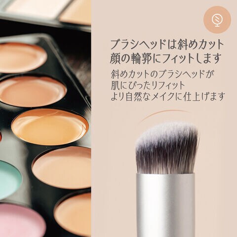 ブラシヘッドは斜めカットを採用、顔の輪郭にフィットし、より自然なメイクに仕上げます。
