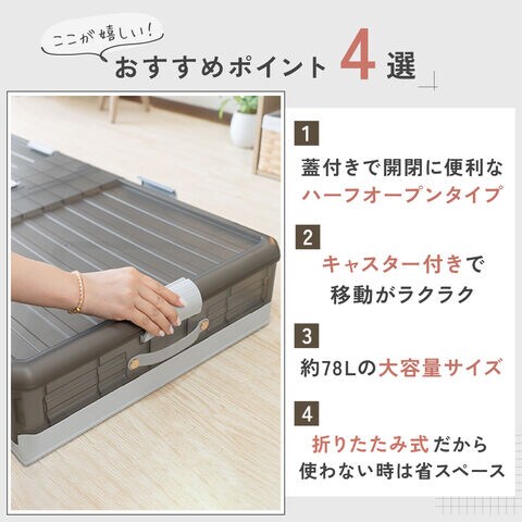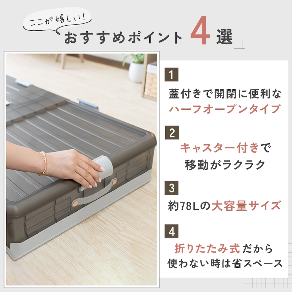 ベッド下 収納ボックス 折りたたみ キャスター ソファ下 ベッド下ストレージ コンテナ 収納ボックス 折畳み 収納ケース 大容量 押入れ収納 組立簡単 積み重ね ベッド下収納ボックス 布団 衣装収納ボックス bed-container