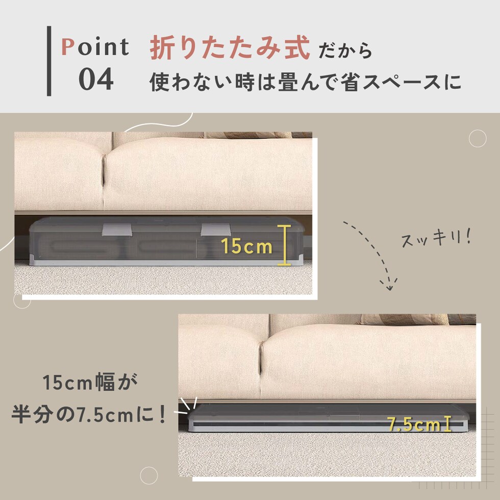 デッドスペースになりがちなベッド下やソファ下を有効活用できます。