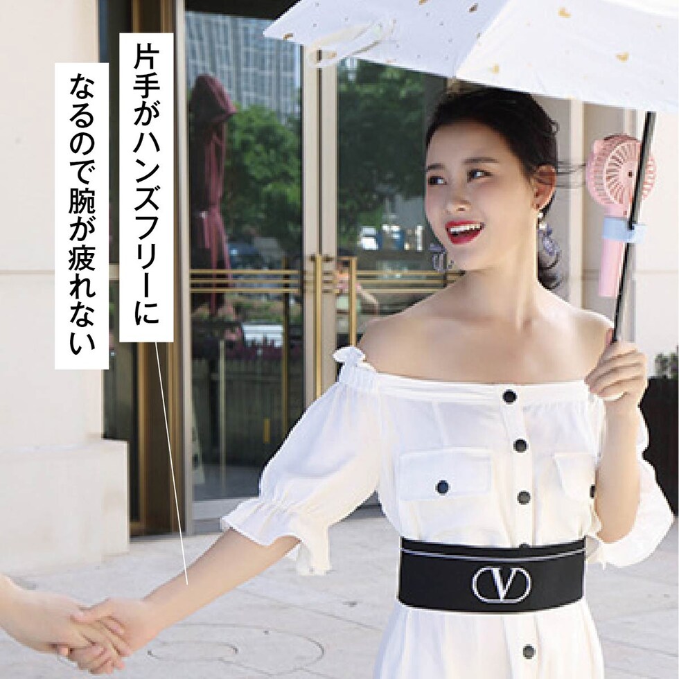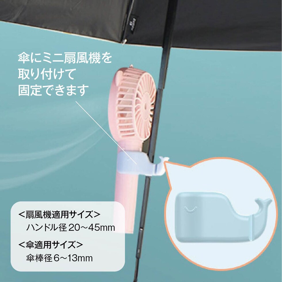ハンディファンを日傘に取り付けられる