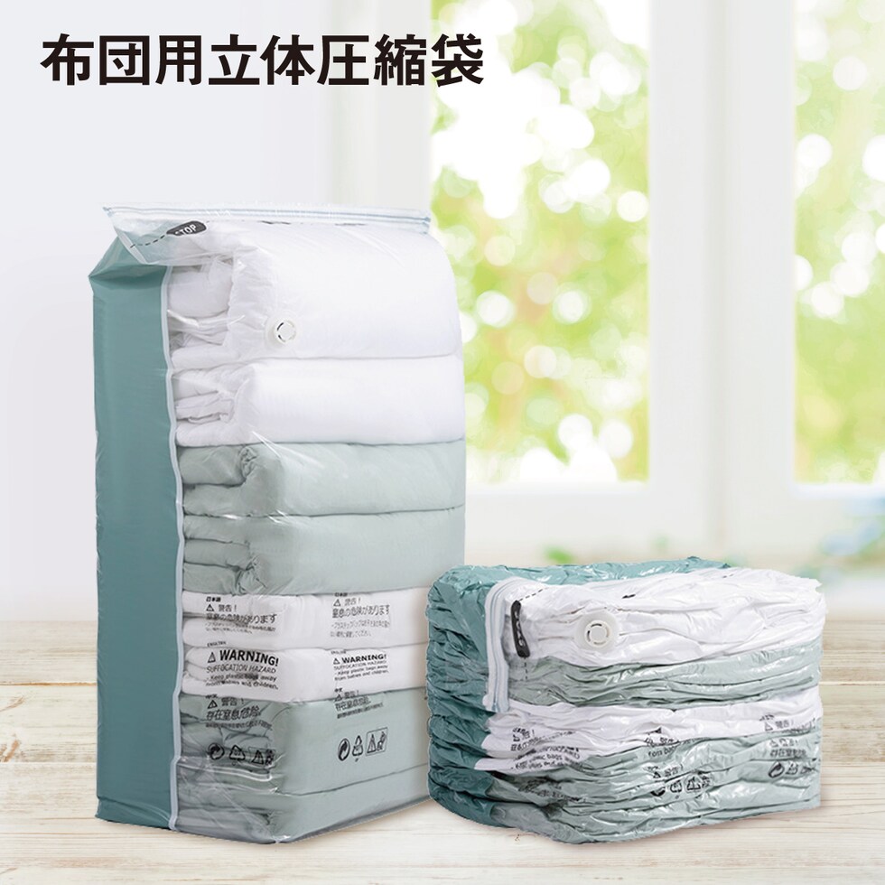 立体 圧縮袋 布団 ふとん 衣類 掃除機不要 1枚入り 押すだけ 圧縮ボックス 38cm×80cm×高さ100cm カビ対策 futon-vc-bag