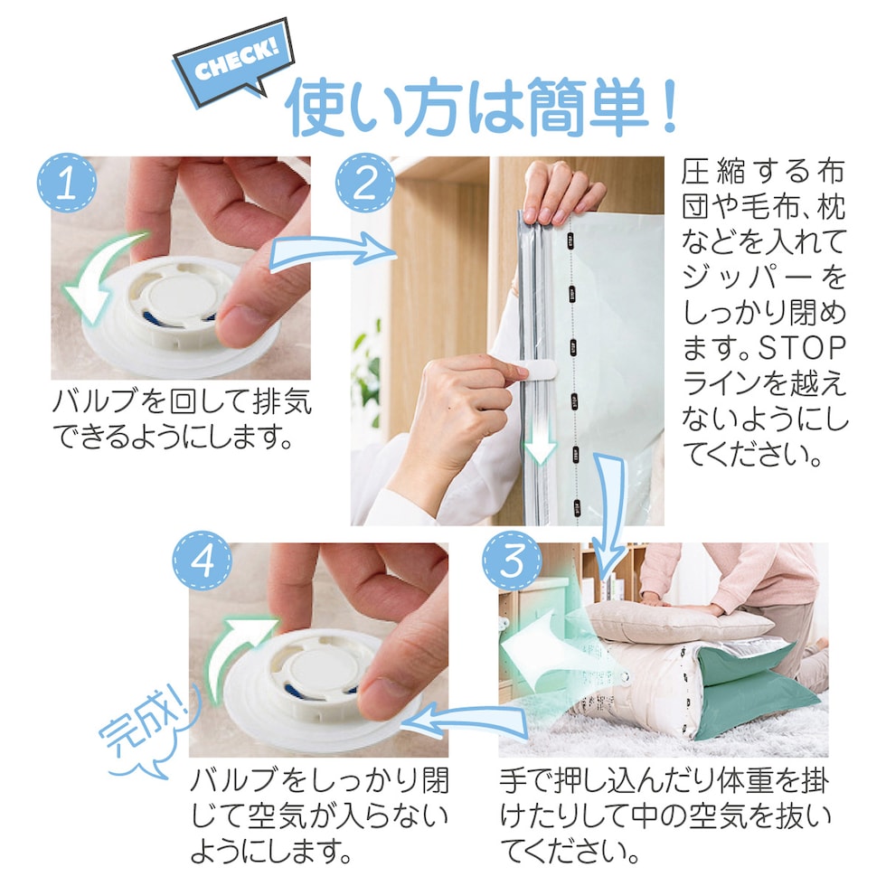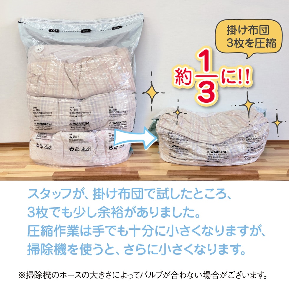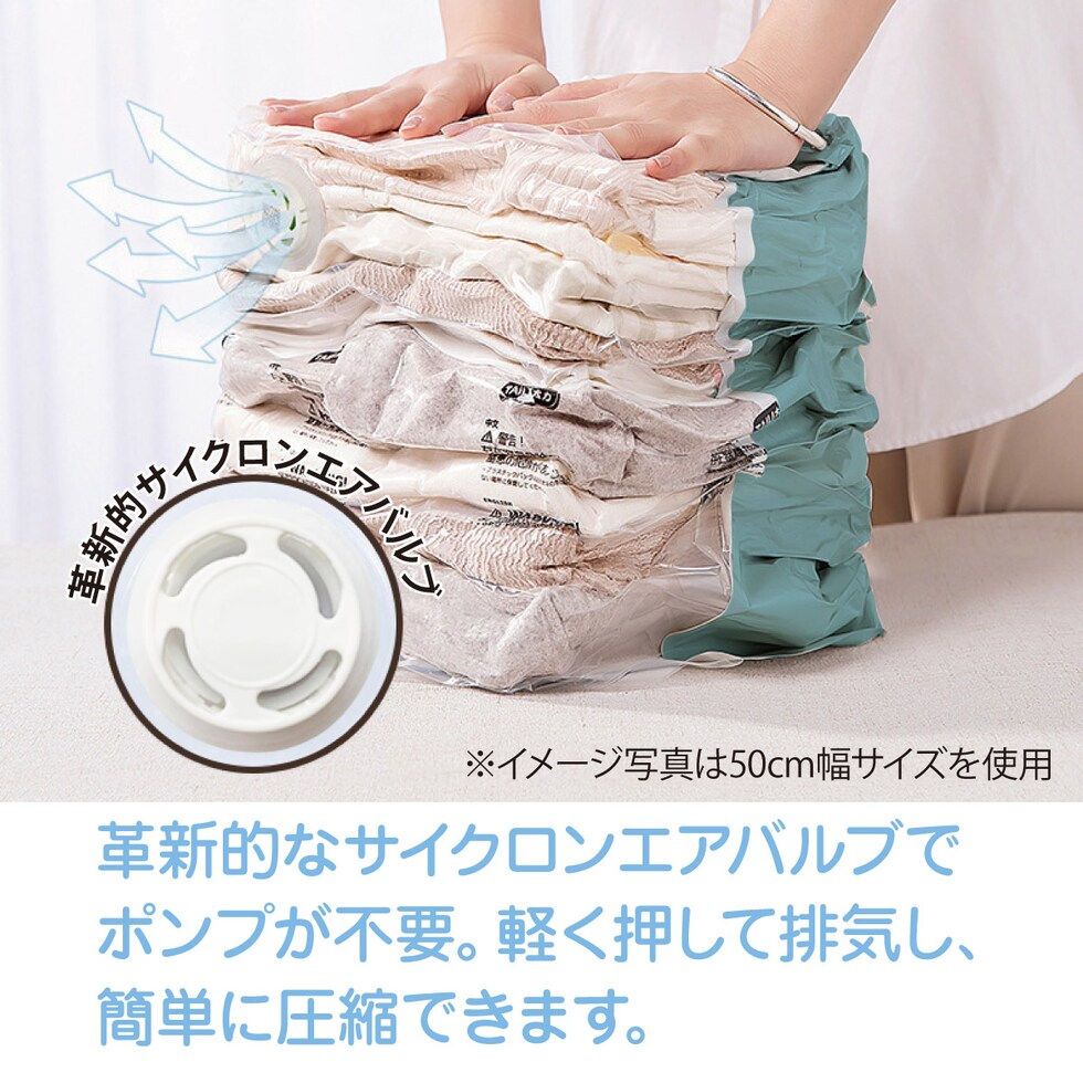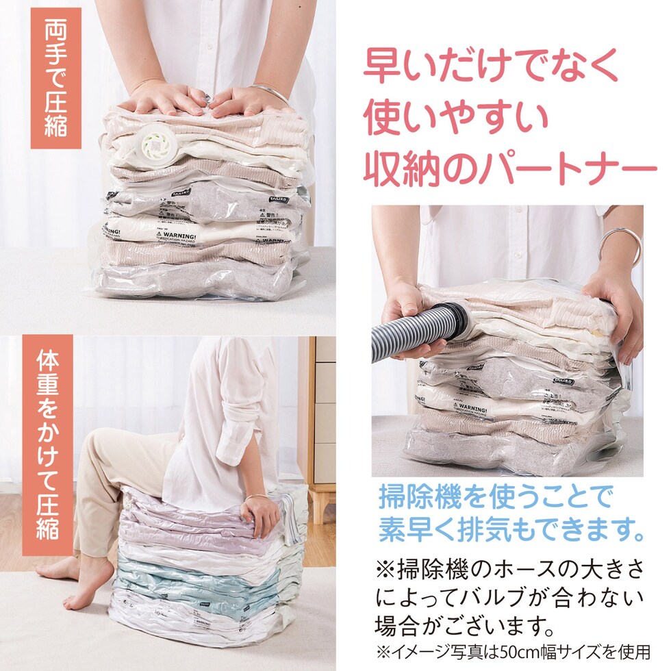 軽く押して排気、一袋をたった数秒で圧縮。