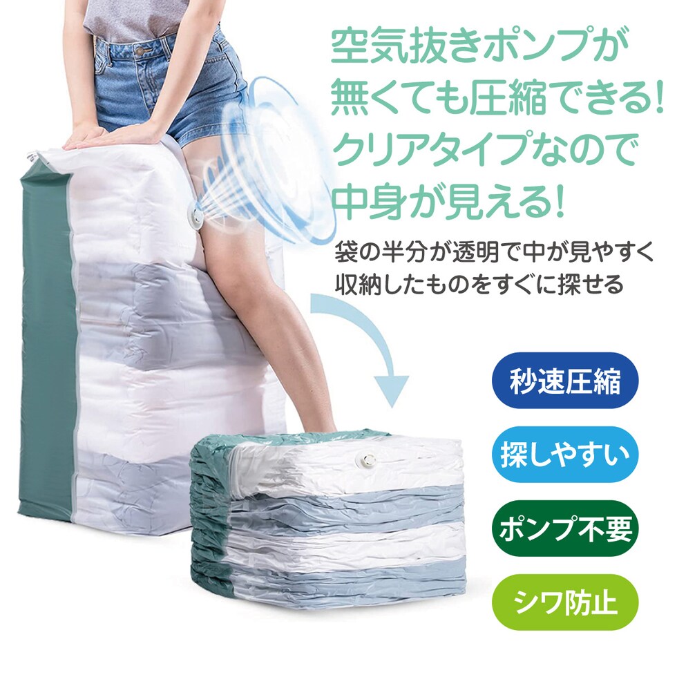 立体 圧縮袋 布団 ふとん 衣類 掃除機不要 1枚入り 押すだけ 圧縮ボックス 38cm×80cm×高さ100cm カビ対策 futon-vc-bagのレビュー