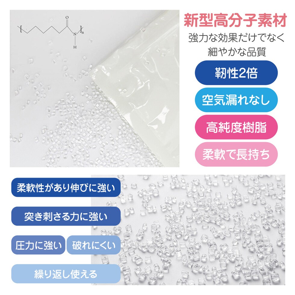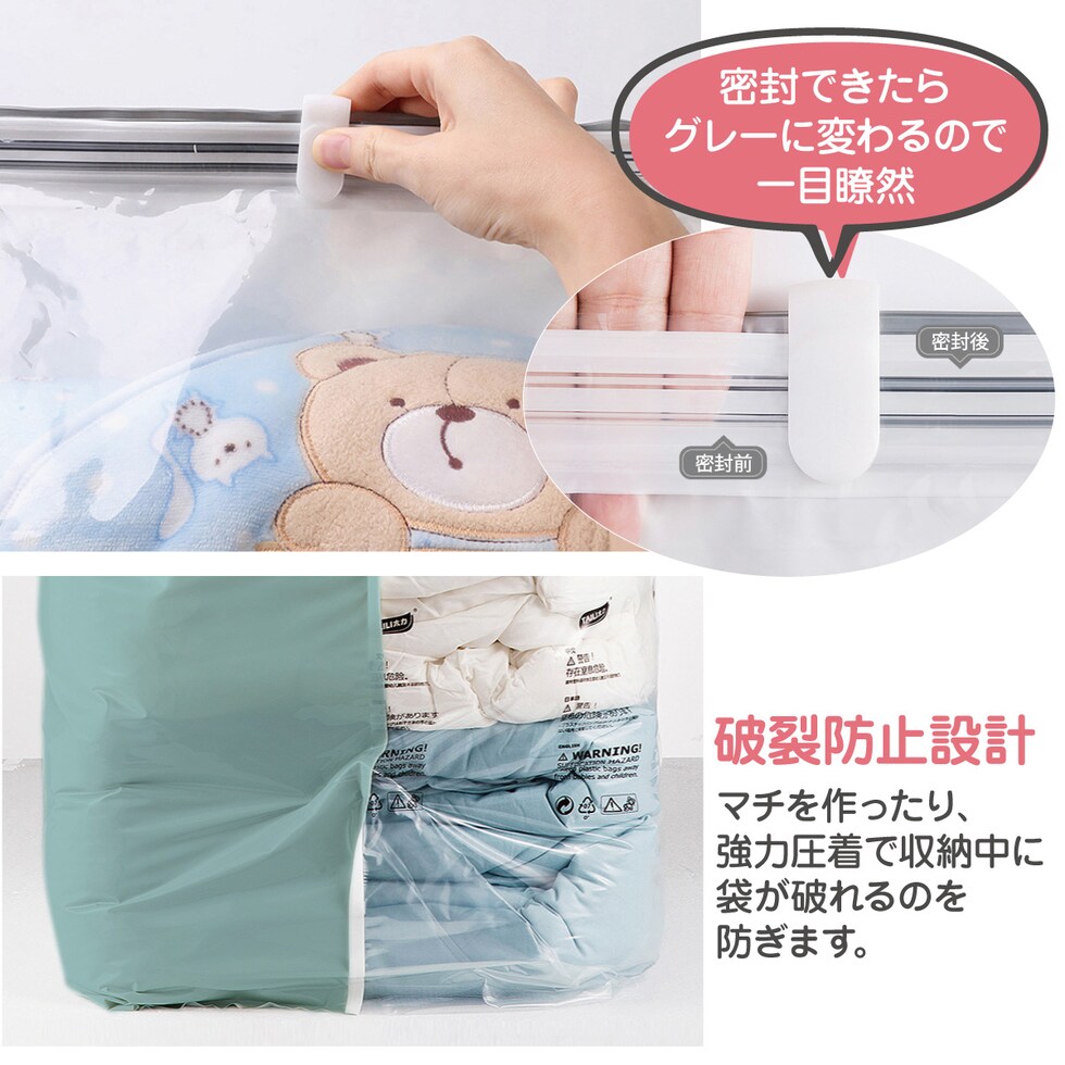 収納中に袋が破れるのを防ぐ、破裂防止設計。