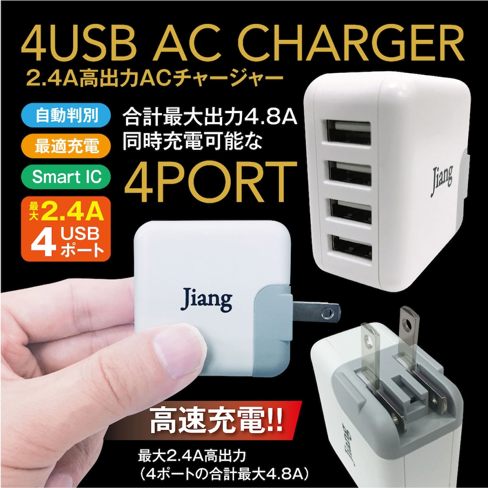 ACアダプター usb充電器 電源アダプタ 4ポート TYPE-C コンパクト充電器 iphone 4USB チャージャー PSE認証 4.8A 4口 コンセント 電源タップ 軽量 同時充電 急速充電 電源アダプター ACアダプタ USBアダプタ スマホ充電器 andr