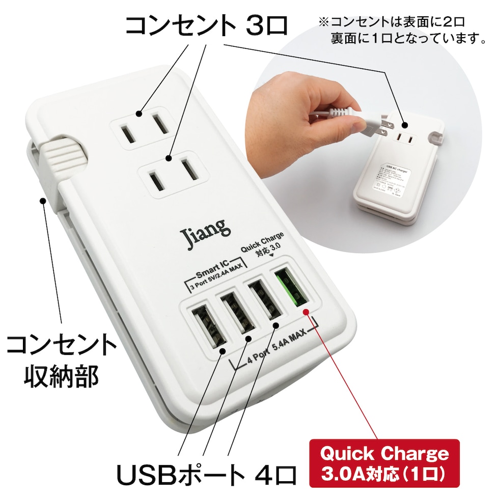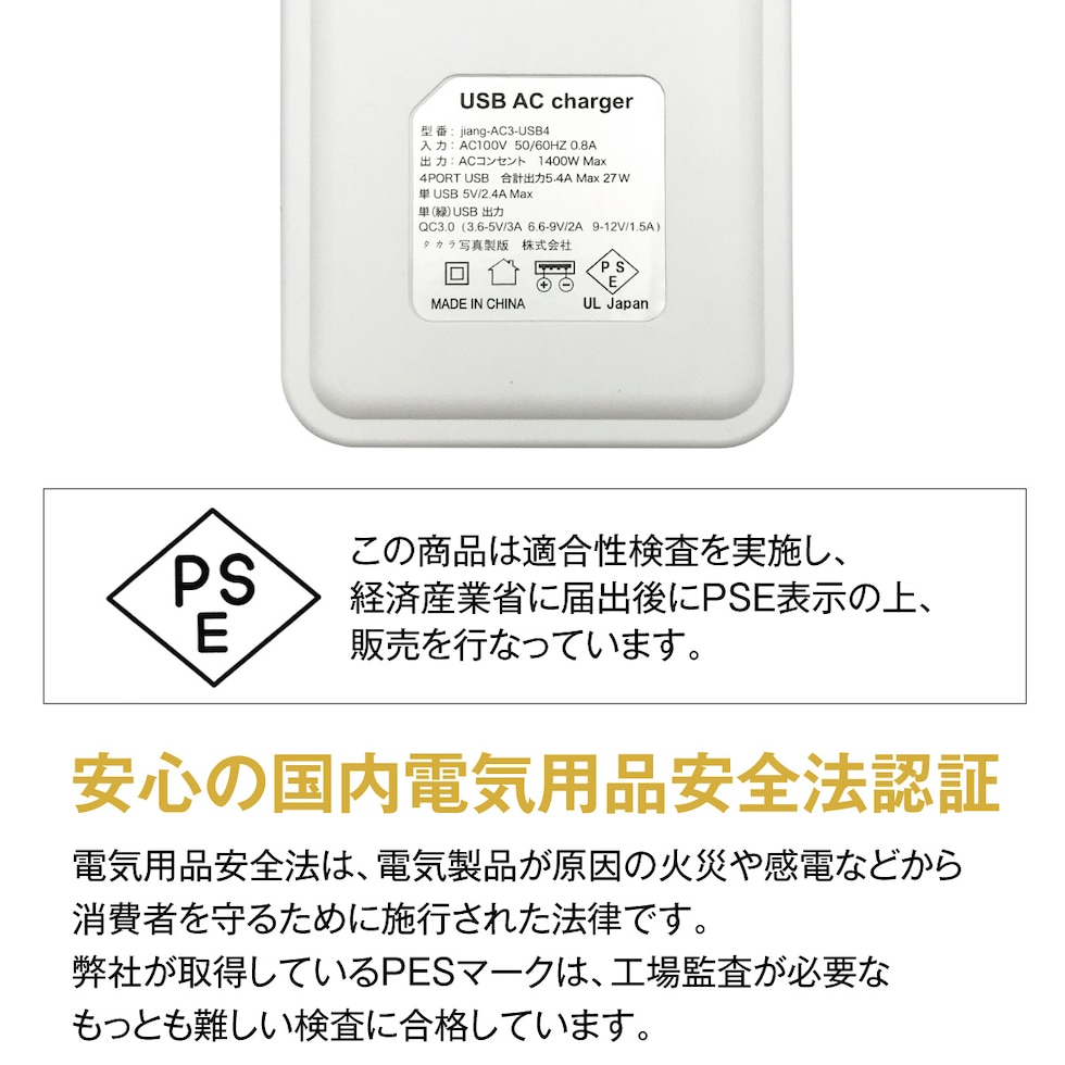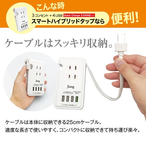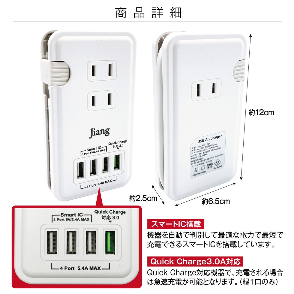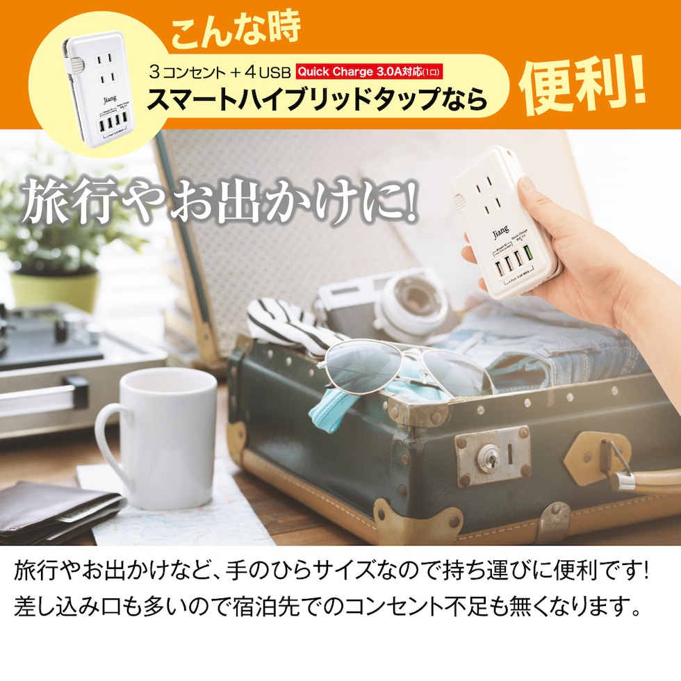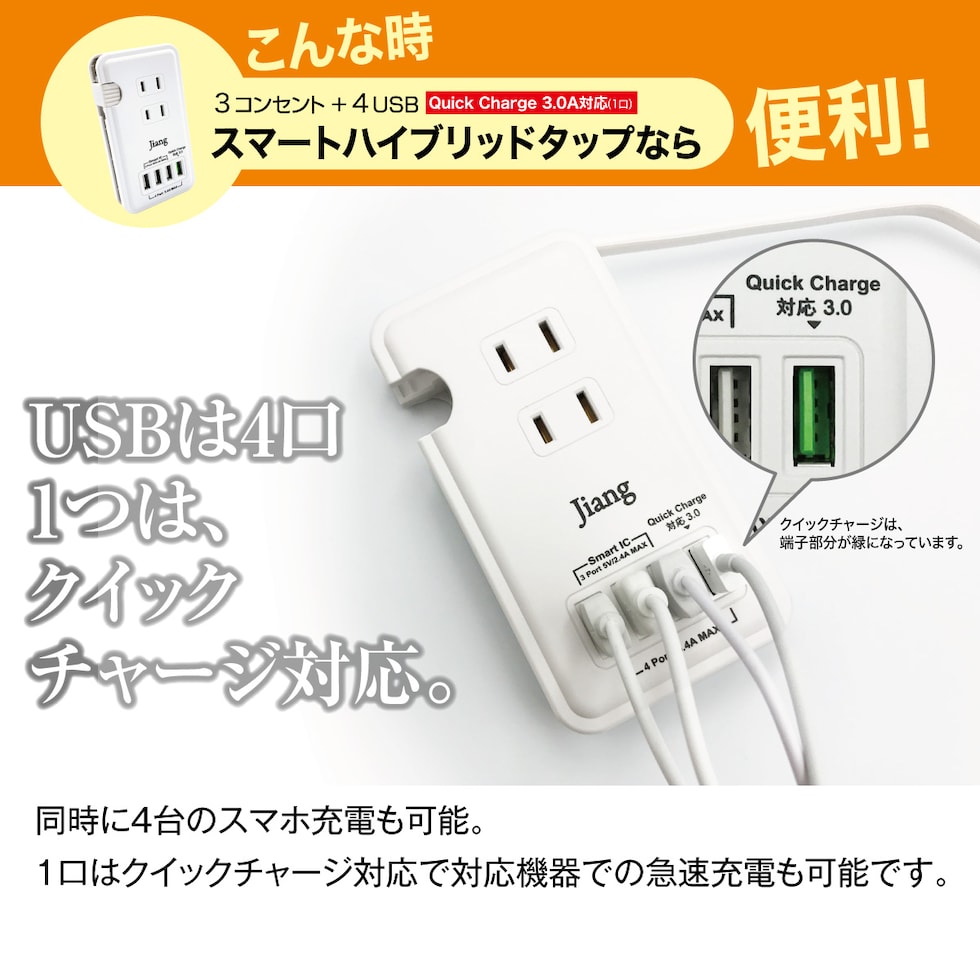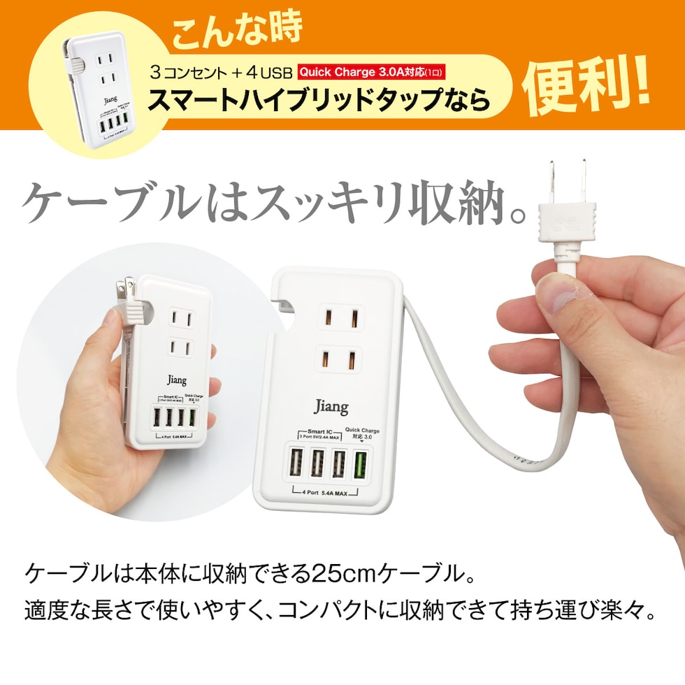 スマートタップ ACアダプター AC アダプター USBタップ USBアダプター ハイブリットタップ 急速 コンパクト 同時充電 タップ 4ポート AC&USB 4口 5.4A 充電器 チャージャー USB充電器 コンセント 3口 1400W 電源タップ 軽量 スマホ充電器 Quick Charge