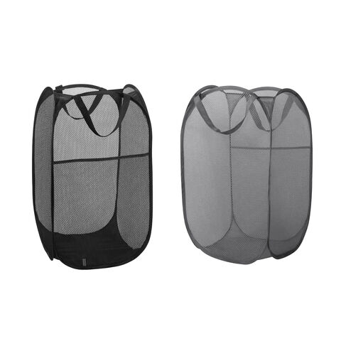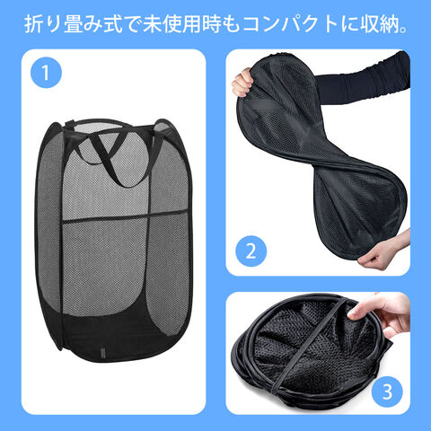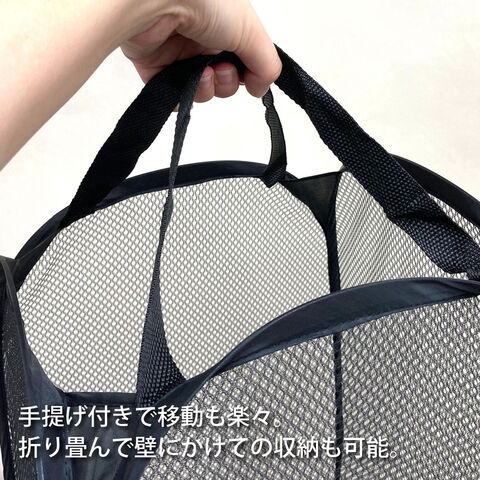 手提げ付きで移動も楽々、折りたたんで壁に掛けての収納も可能。