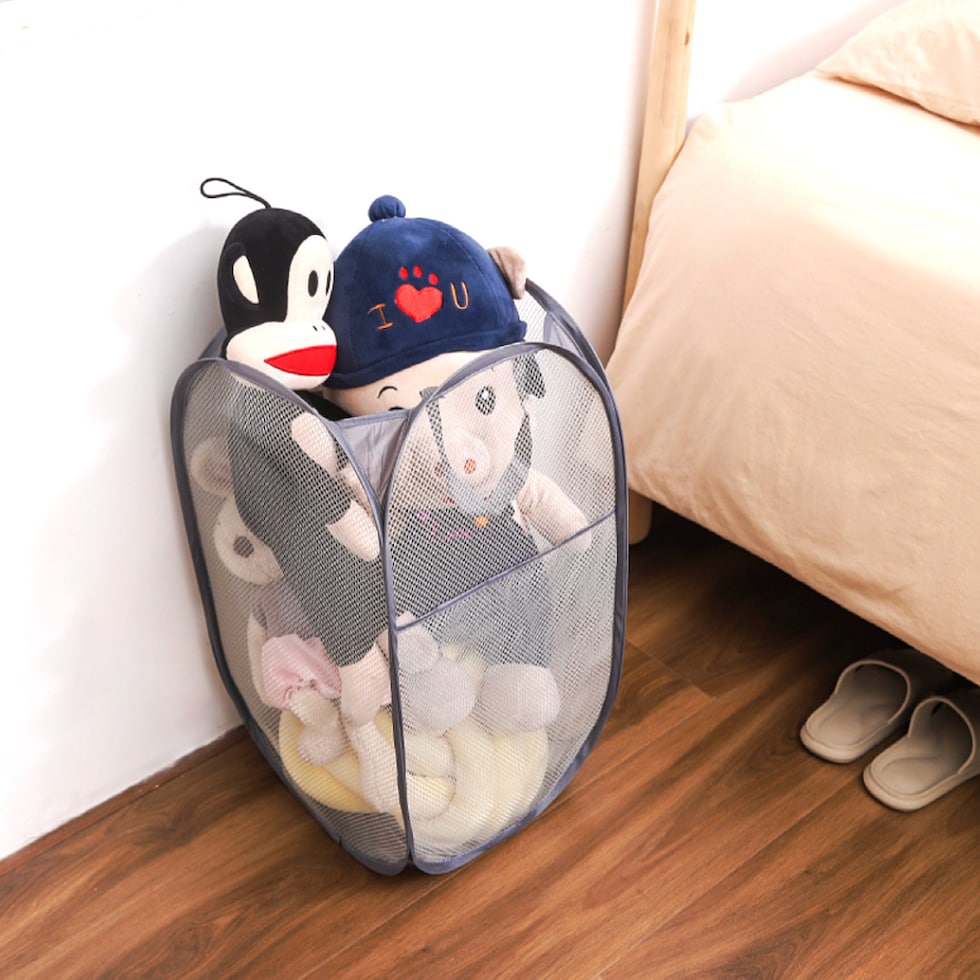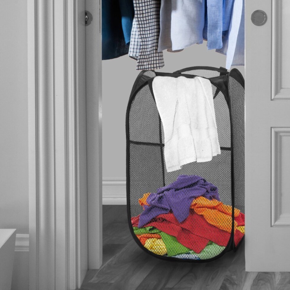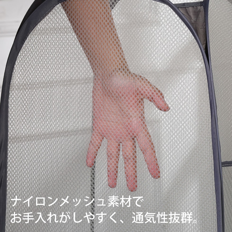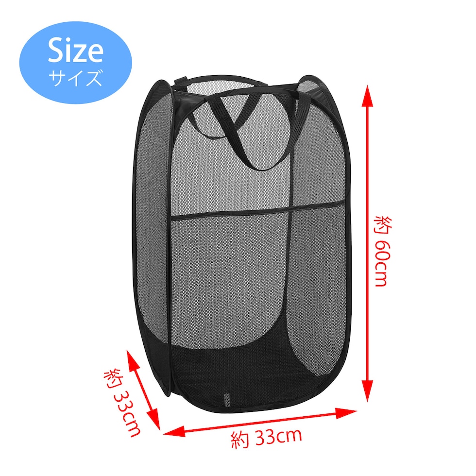 手提げ付きで移動も楽々、折りたたんで壁に掛けての収納も可能。