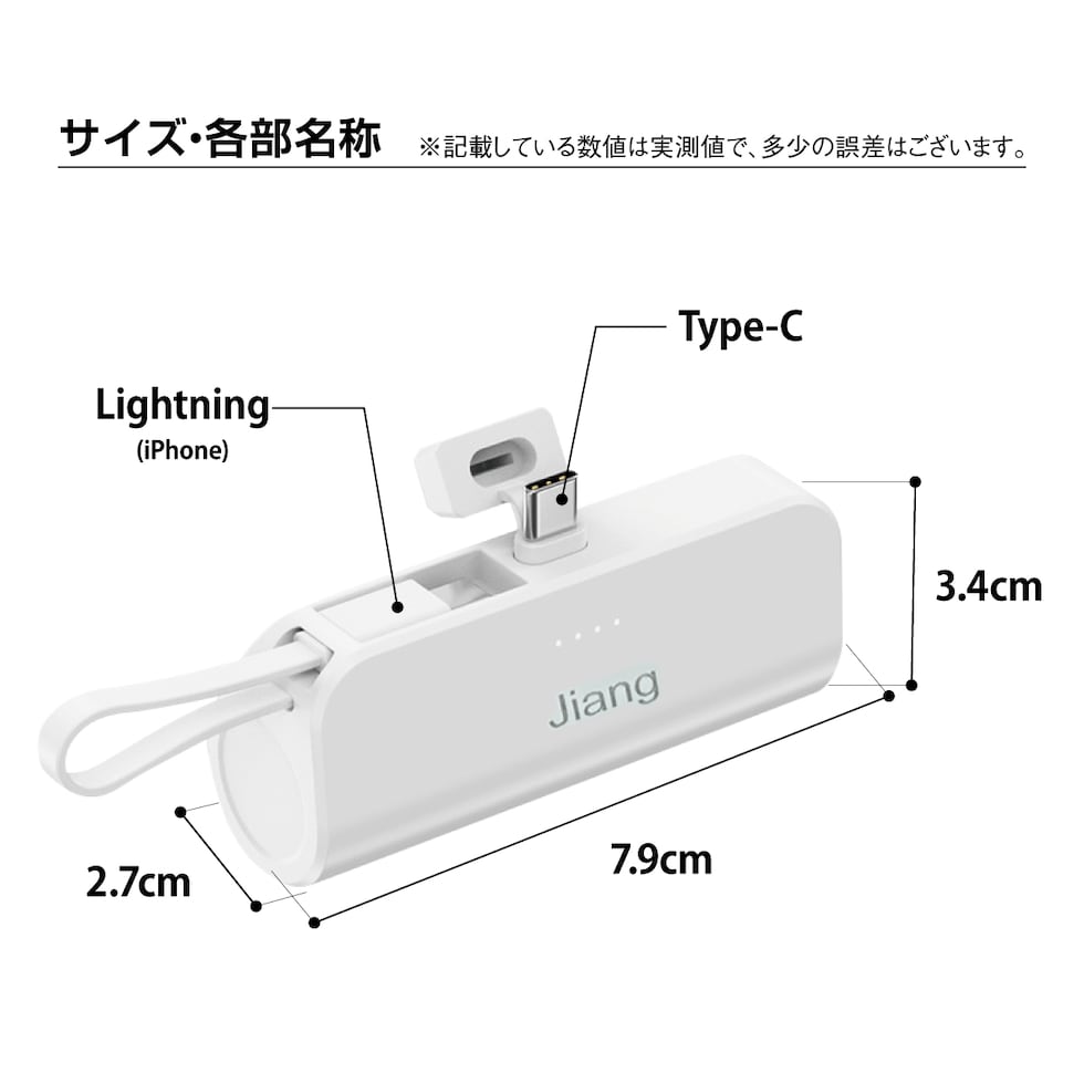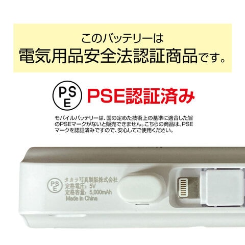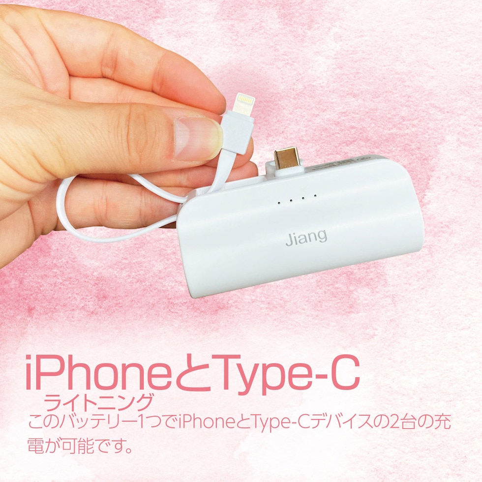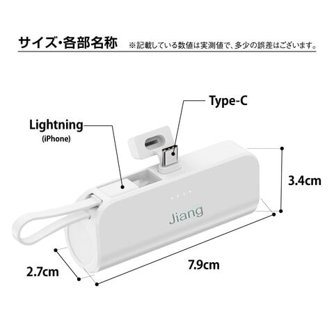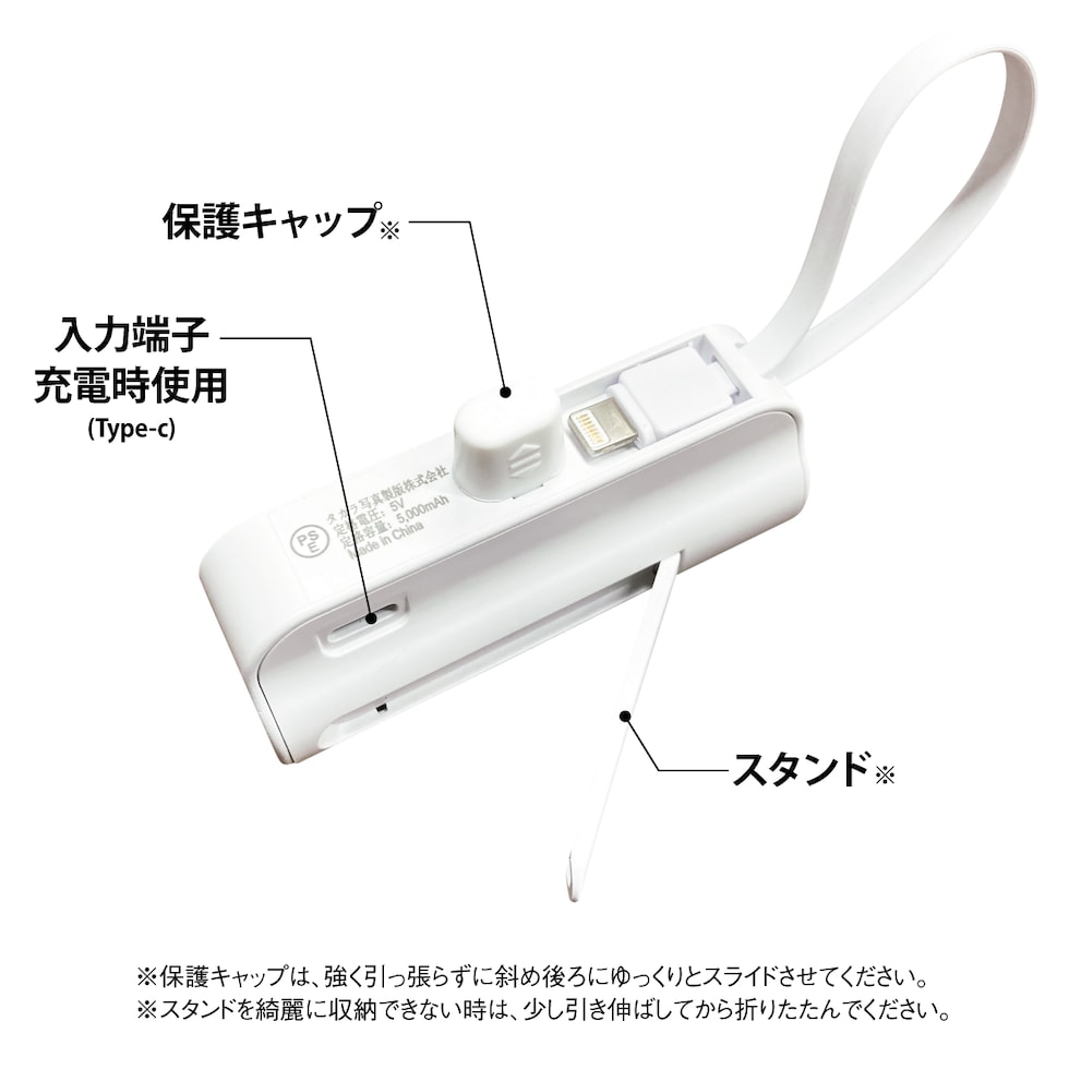 大容量 モバイルバッテリー 飛行機OK 軽量 便利 ミニ 小型 直接充電 コネクター内蔵 ケーブル内蔵 5000mAh コンパクト コードレス ケーブル不要 iPhone Android Type-C タイプC ライトニング 軽い 充電器 便利グッズ 旅行 防災 mini-battery