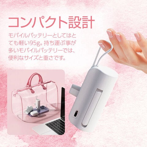 【コンパクト設計】モバイルバッテリーとしては、とても軽い95g。持ち運ぶ事が多いモバイルバッテリーでは、便利なサイズと重さです。