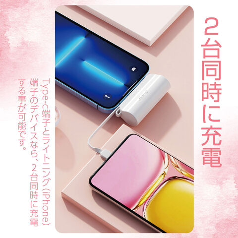 【2台同時に充電】Type-C端子とiPhone端子のデバイスであれば2台同時に充電することができます。