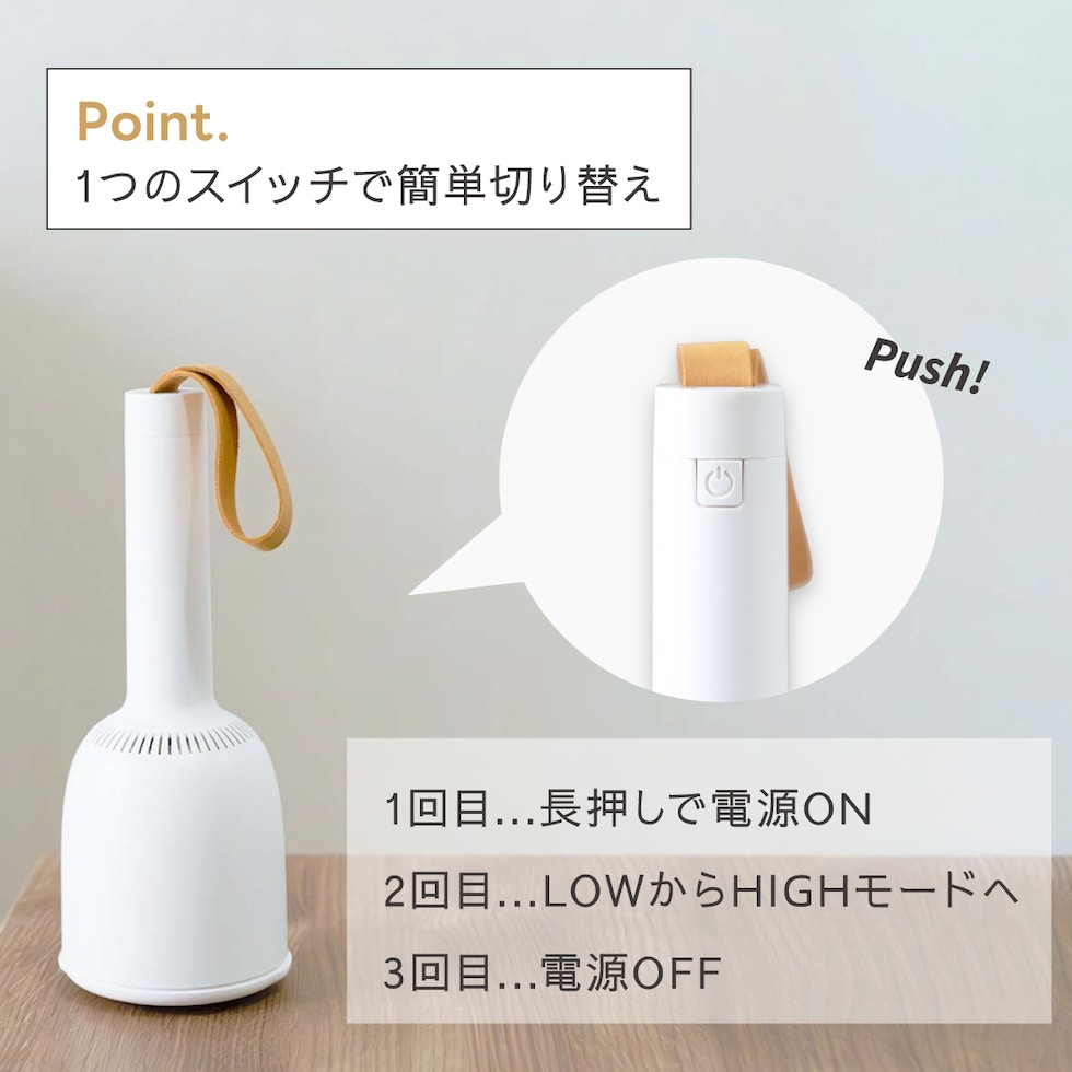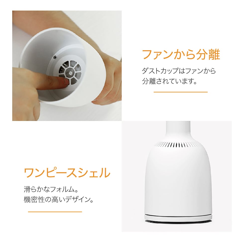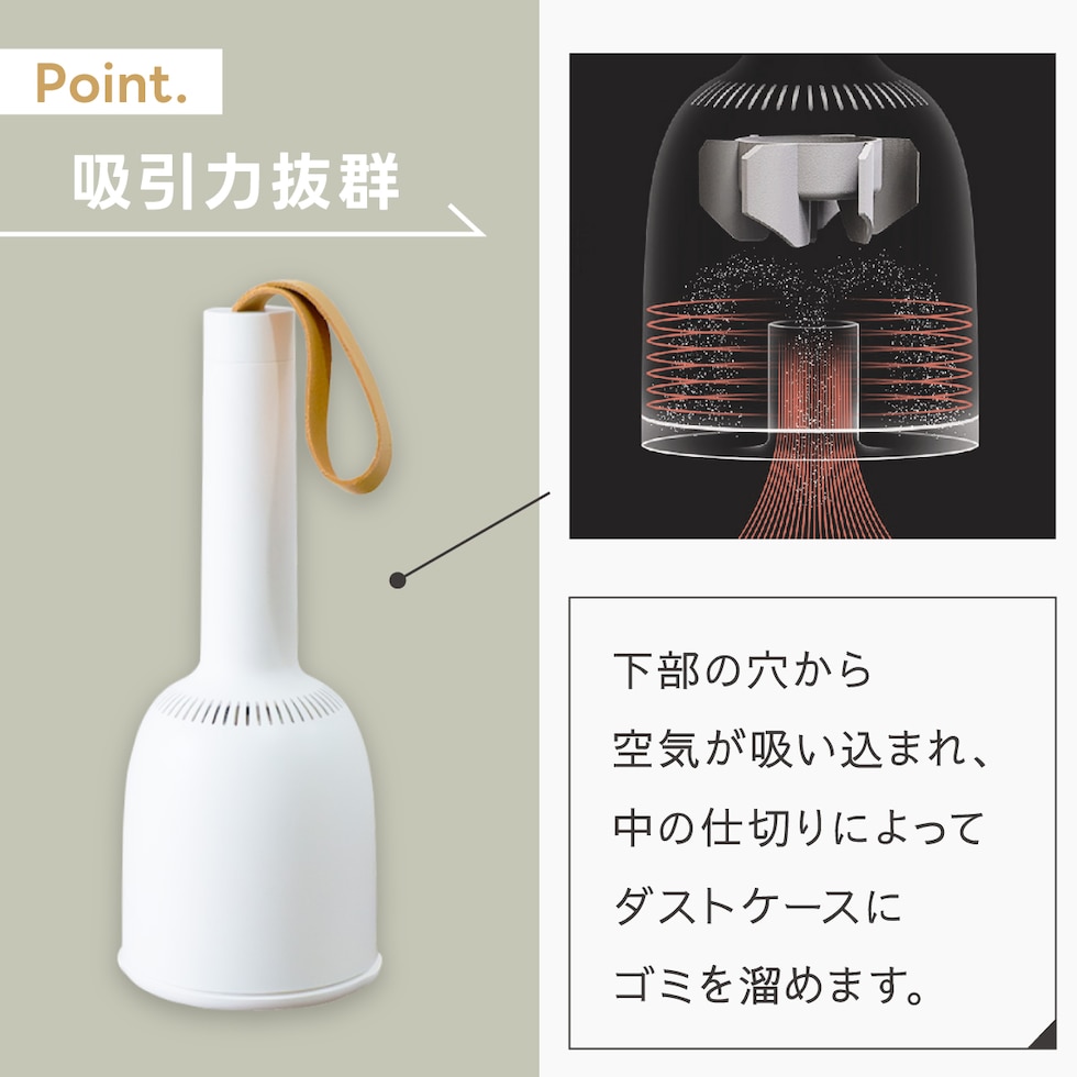 ボタン1つで簡単操作、いつでもどこでもお手軽にお掃除。