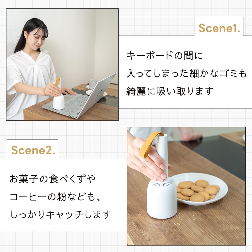 使い方が幅広い、お菓子の食べかす、キーボードの掃除、ペットの抜け毛、車の内部清掃にも