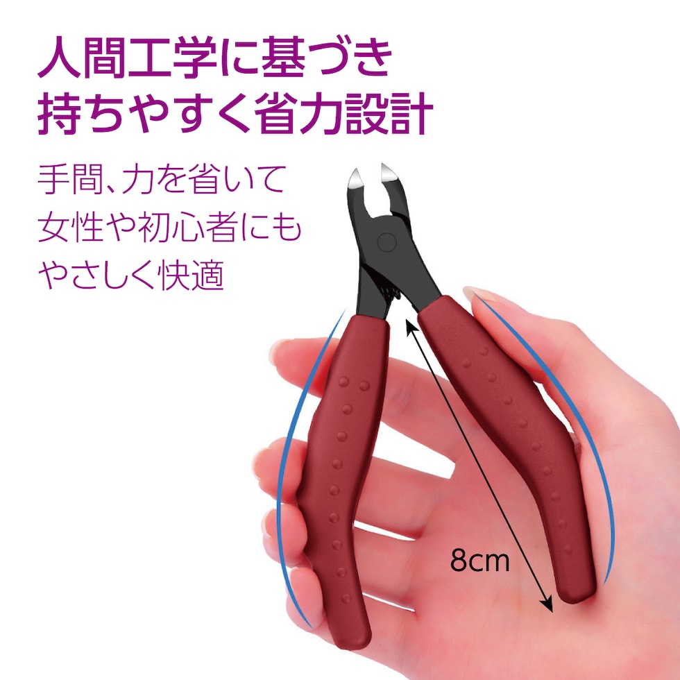 細い2mmの先端、深い爪溝のトリミングが簡単です。