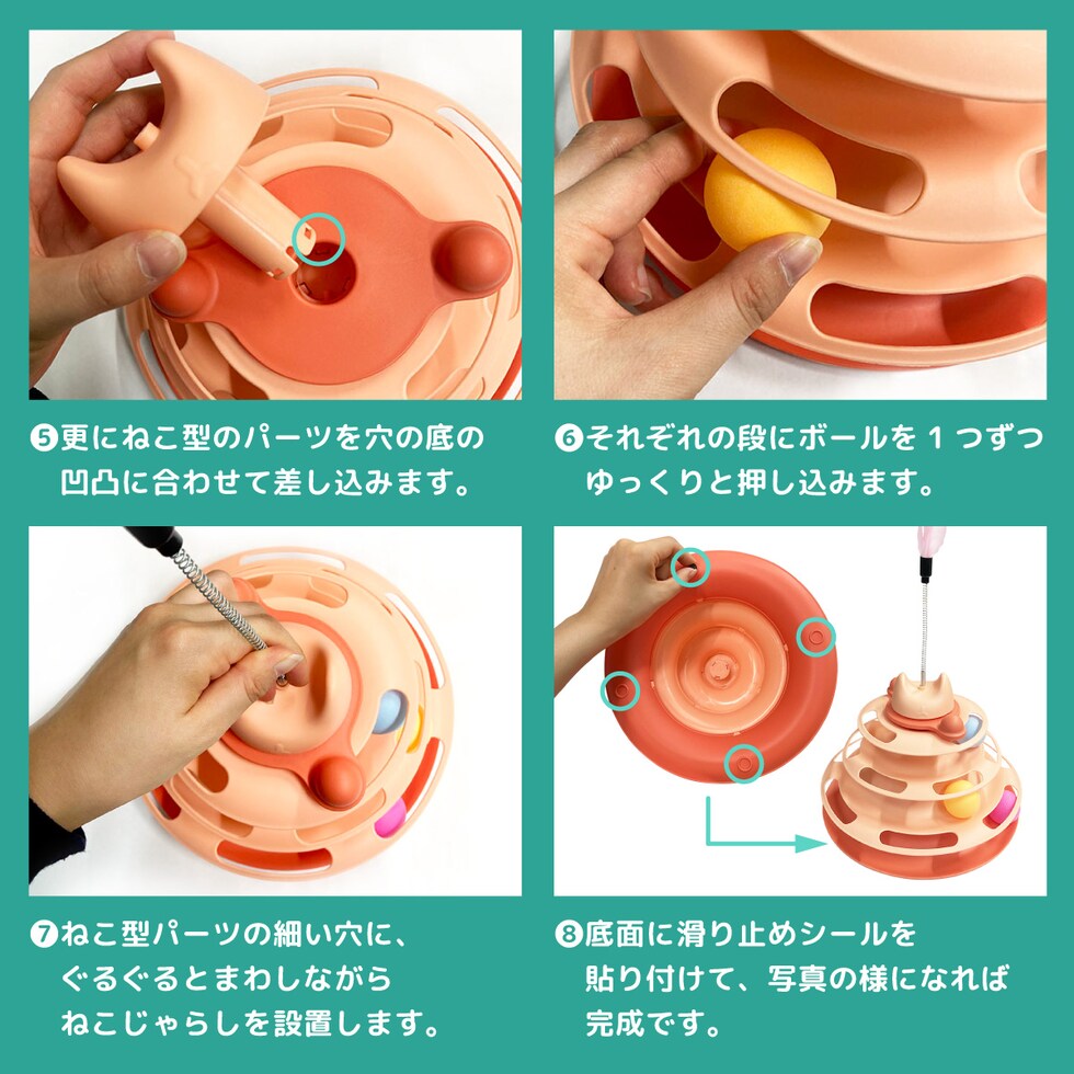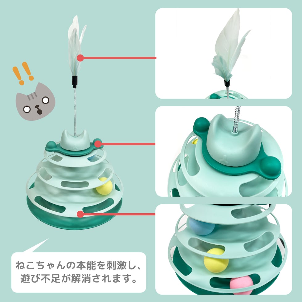 ねこのボールタワーで猫ちゃんの本能を刺激し、運動不足やストレスを解消させます。