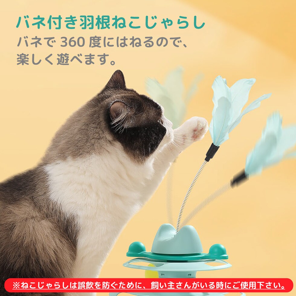 【バネ付き羽根ねこじゃらし】バネで360度にはねるので、楽しく遊べます。