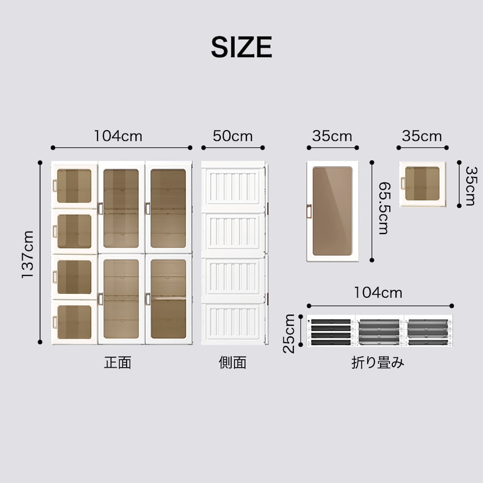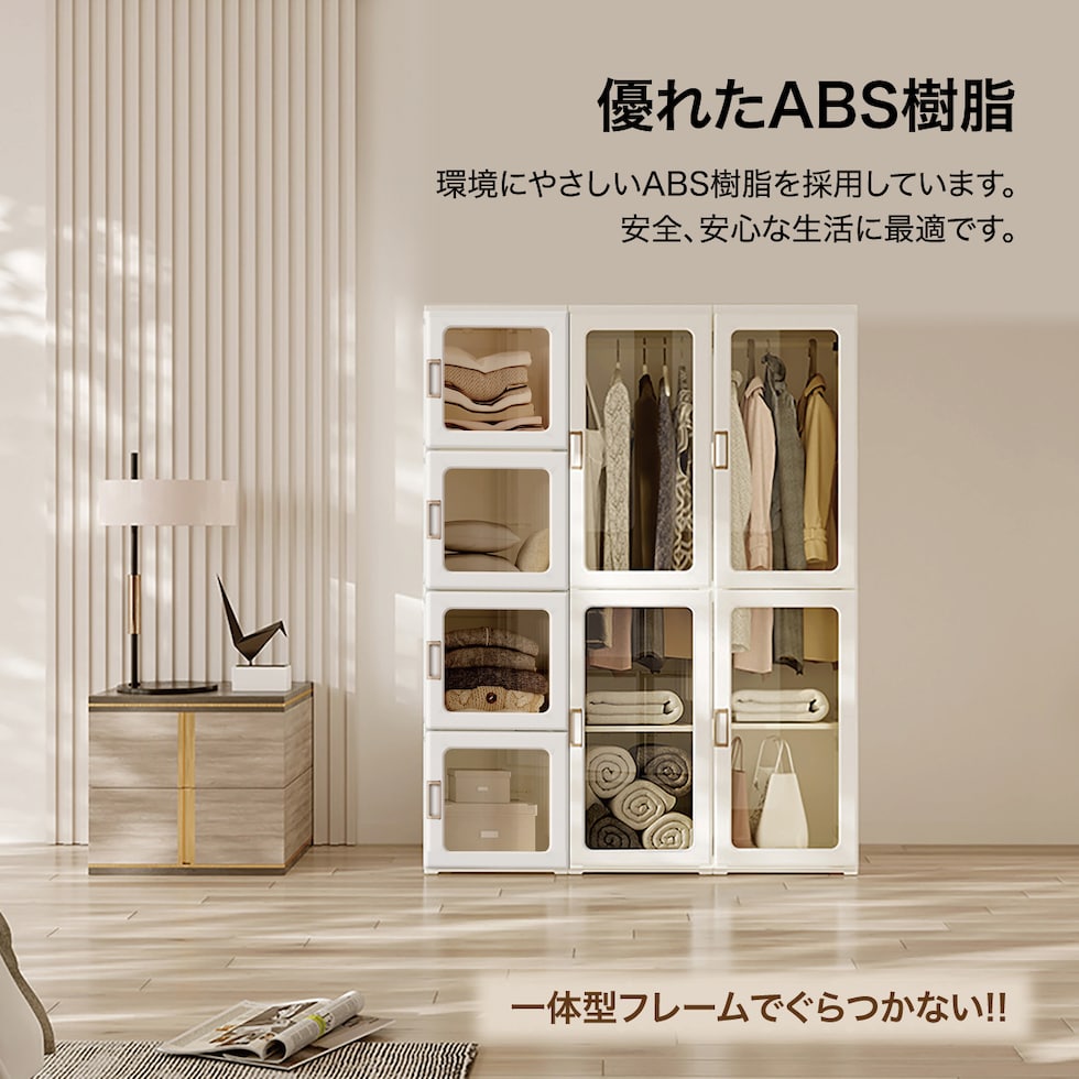 ワードローブ 折りたたみ 洋服ダンス タンス 洋服 収納 クローゼット 収納 家具 白 ホワイト 大容量 8枚扉 ドア 透明 軽量 ori-wardrobe