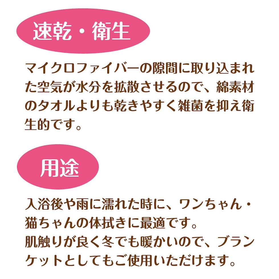 入浴後や雨に濡れた時、ワンちゃん・猫ちゃんの体拭きに最適!